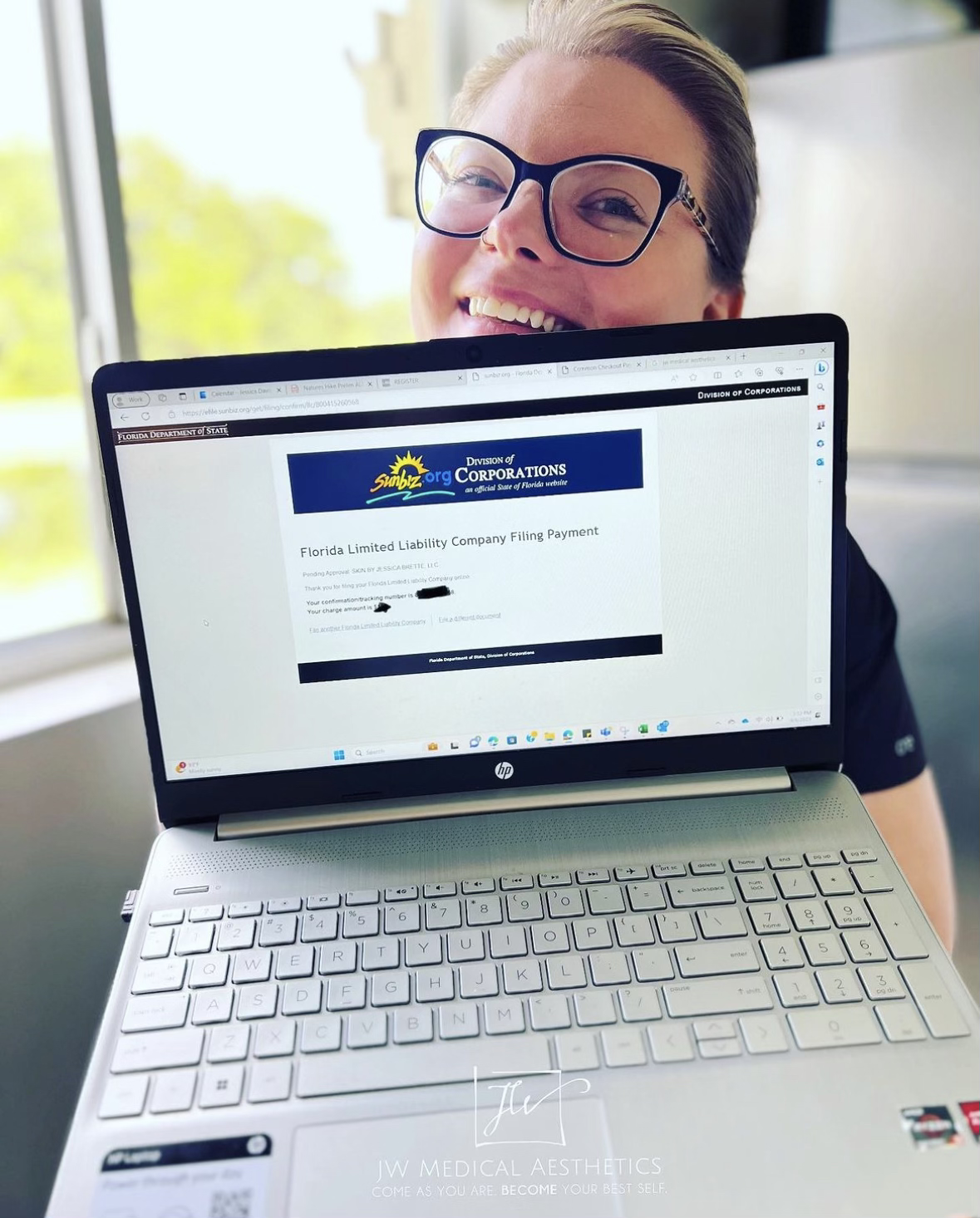 Our JW Mentee is in her 9th month of the year long mentorship program that I offer at JW Medical Aesthetics and today is a big day!! She registered as a business owner!!! She has 3 months left in the program and she will be completely equipped to be launched into her destiny!!!!!